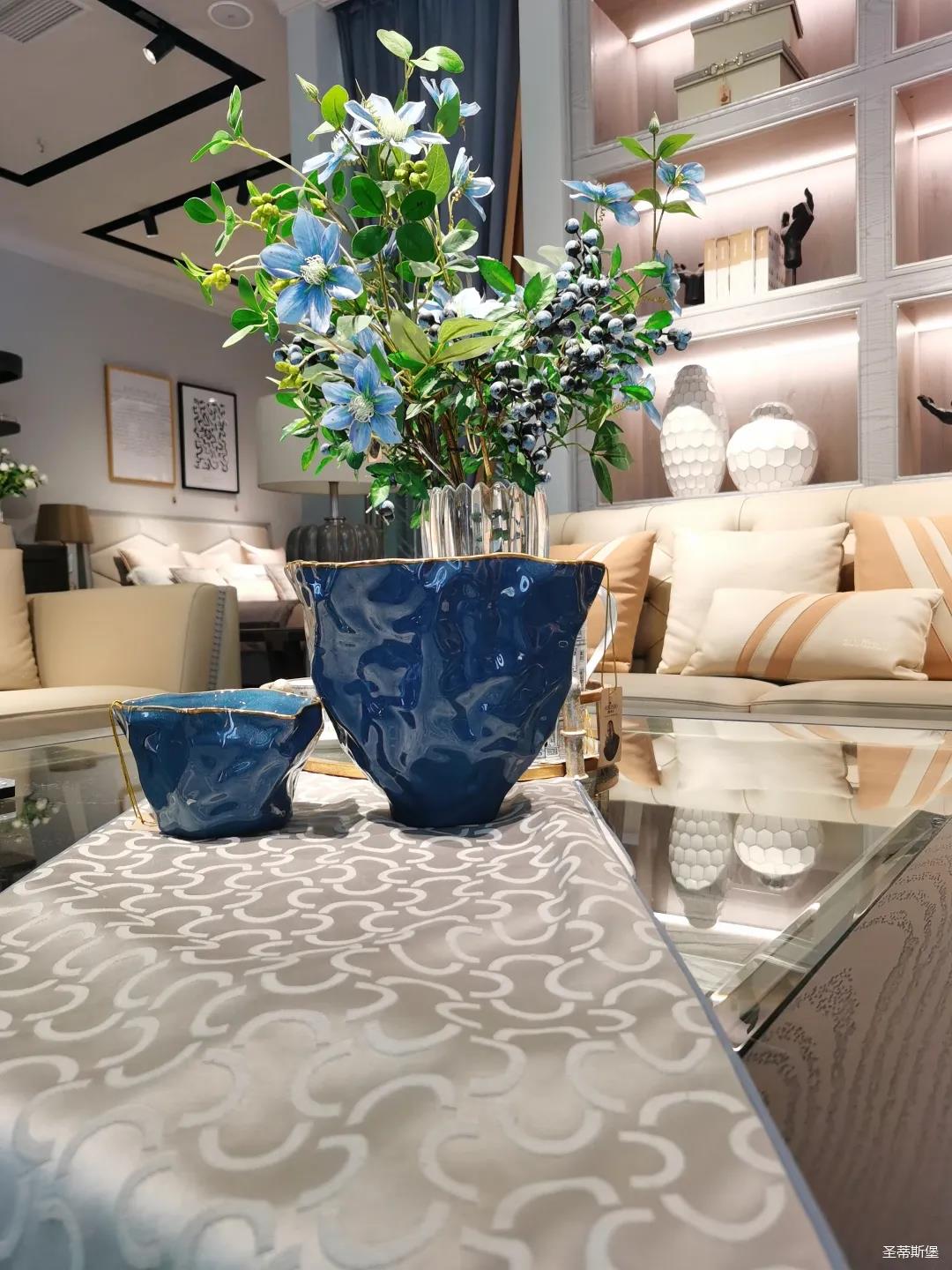 中國(guó)傳統(tǒng)陶瓷藝術(shù),尤見(jiàn)裝飾匠心。表面凹凸,深淺海藍(lán)交錯(cuò),倒映出海面迎風(fēng)起波的場(chǎng)景,深邃沉靜。