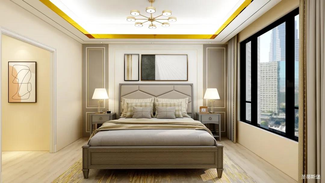 整個空間將對稱美進行到底,雖在設(shè)計思想上有所保留,但呈現(xiàn)的卻是一個擁有秩序感的家,高級的莫蘭迪灰與溫柔的象牙白居中搭配,優(yōu)雅又治愈,能在睡眠上帶來安穩(wěn)與舒適的張力。