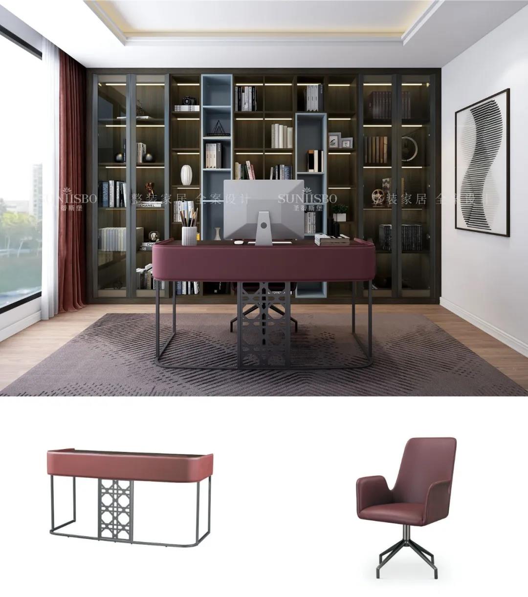 書房用定制柜解決了一面墻的設(shè)計,沒有夸張的色彩裝飾,簡潔的柜體與墻面搭配起來顯得十分精致整潔,透明的可視區(qū)域從視覺上擴(kuò)大了空間感。閑暇時光,拾一本書,于書房,將生活與工作區(qū)分開來。