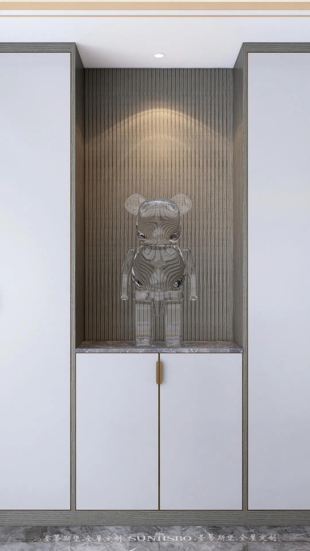 在細節(jié)設計之中,設計師以實木+紋理,營造一派簡約輕奢之感,看似沒有繁雜的元素修飾,卻讓家多了一份高級感。