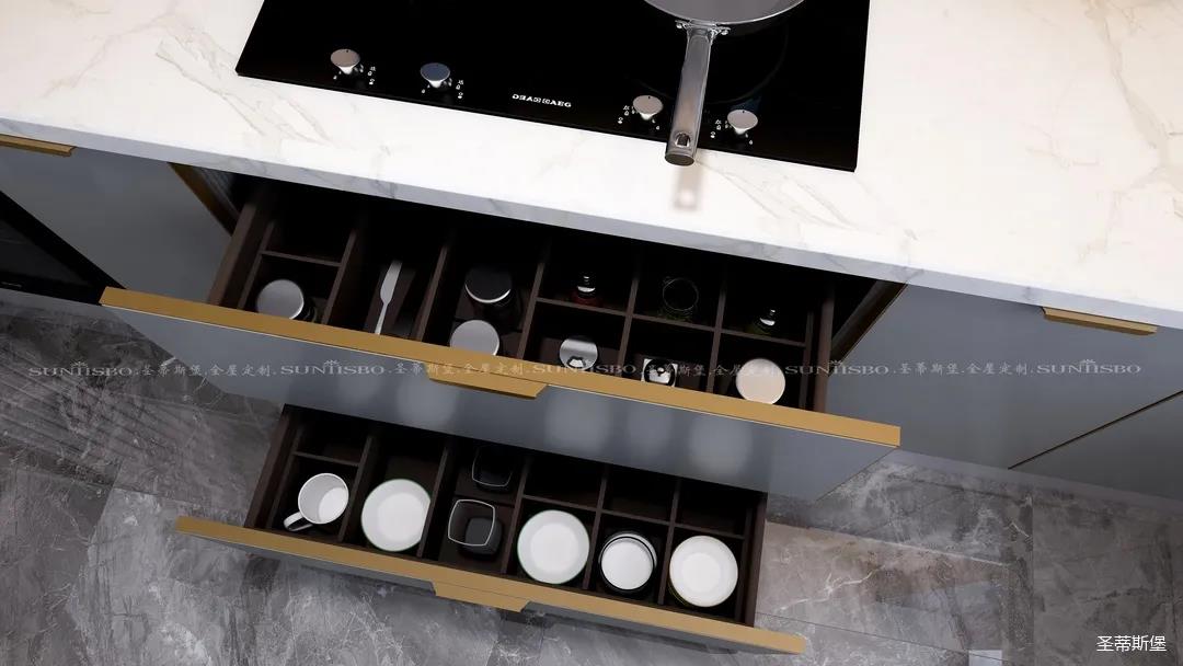 廚房是獨屬我的一片小天地,設計師充分利用了材質(zhì)特性,定制高柜,根據(jù)我的用廚習慣進行收納區(qū)域劃分,極簡大氣的外部結構實則蘊藏著超乎想象的大收納空間。