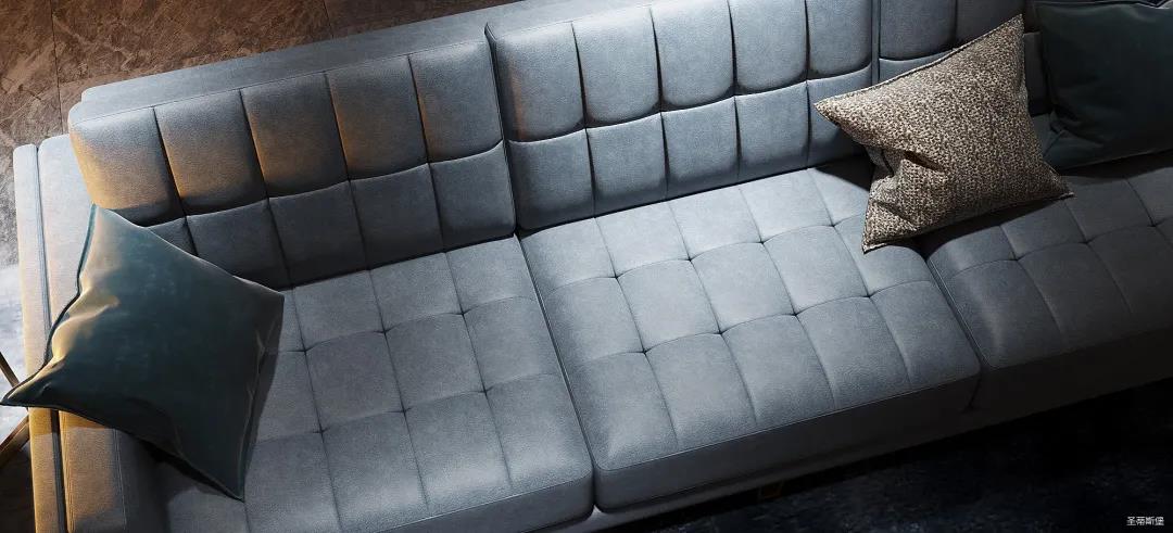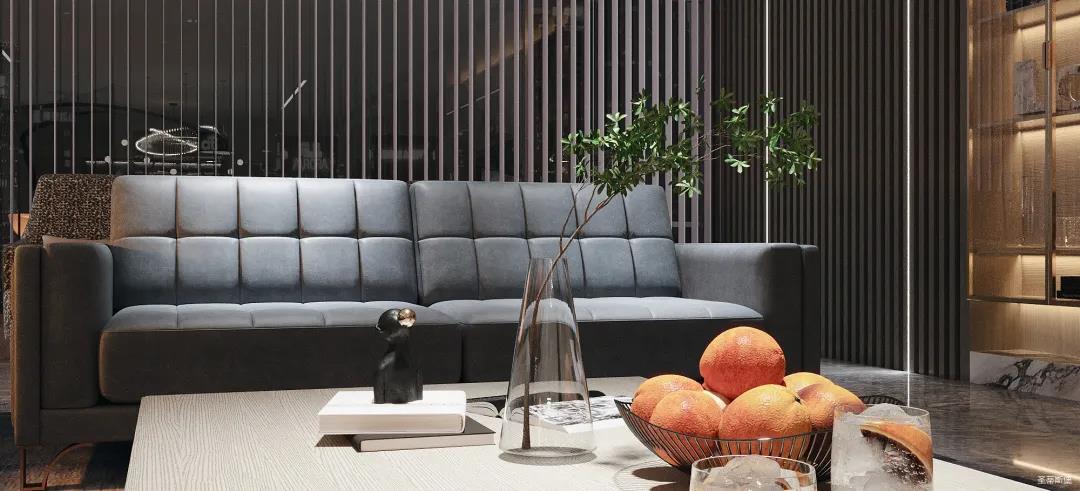 極具細節(jié)考究的“霸氣”沙發(fā),從霧霾藍的色彩中彰顯著業(yè)主沉穩(wěn)氣質與時尚品位。線條規(guī)律整齊,方塊式的設計,以摩登時尚演繹著優(yōu)雅的幾何美學力量。