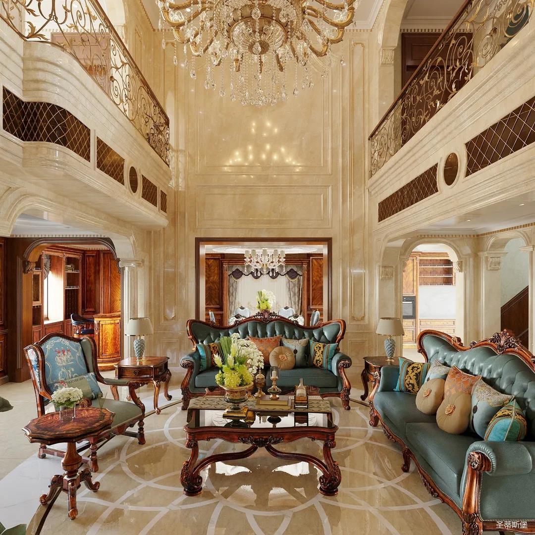 客廳中沙發(fā)作為一眼吸睛的主角,深厚的木紋雕刻保留了材質(zhì)、色彩的大致風格,強烈的表達著美式文化的渾厚底蘊。同時又摒棄了過于復雜的肌理和裝飾,簡化了線條,將美式的大氣與簡單的生活態(tài)度融合,提升美式浪漫家居格調(diào)。