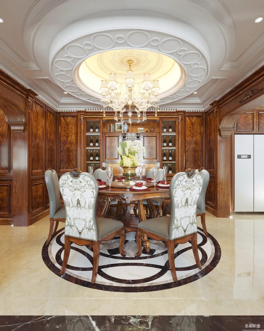 女業(yè)主是留美歸來,非常喜歡美式用餐氛圍,設計師以懷舊雅致作為室內(nèi)基調(diào),整體定制柜與護墻,都透著美式的自然懷舊,即使褪去家具軟裝,僅存留硬體結(jié)構(gòu),仍透散著優(yōu)雅純凈的美式韻味。