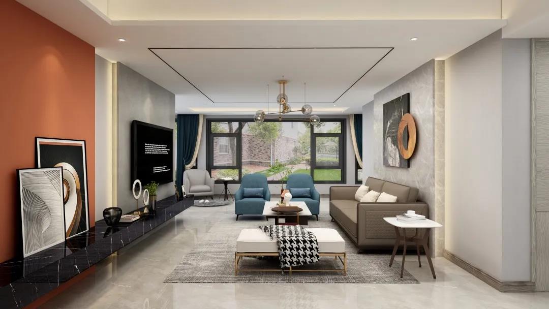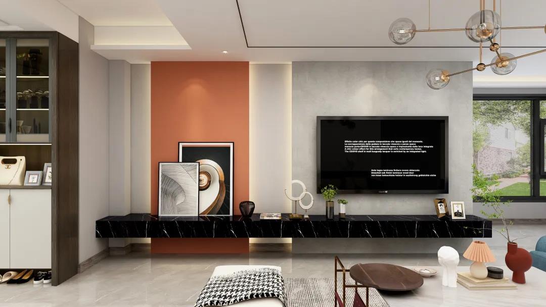 窗外的陽光使得客廳空間更加明亮寬敞。電視墻精致的線條設(shè)計,令空間更具層次感。亮眼的愛馬仕橙,搭配個性的抽象掛畫又讓整個墻面更加豐富。活力與沉穩(wěn)融合,給平凡而枯燥的生活增添些許希望與美好。