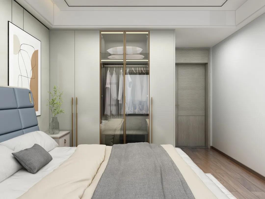 合理利用空間,這樣主臥便集臥室、衣帽間為一體,居住舒適度大大提升。營造了一個舒適度滿滿的私密空間。