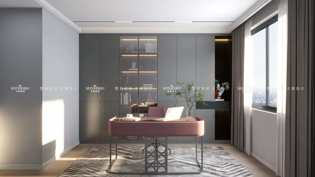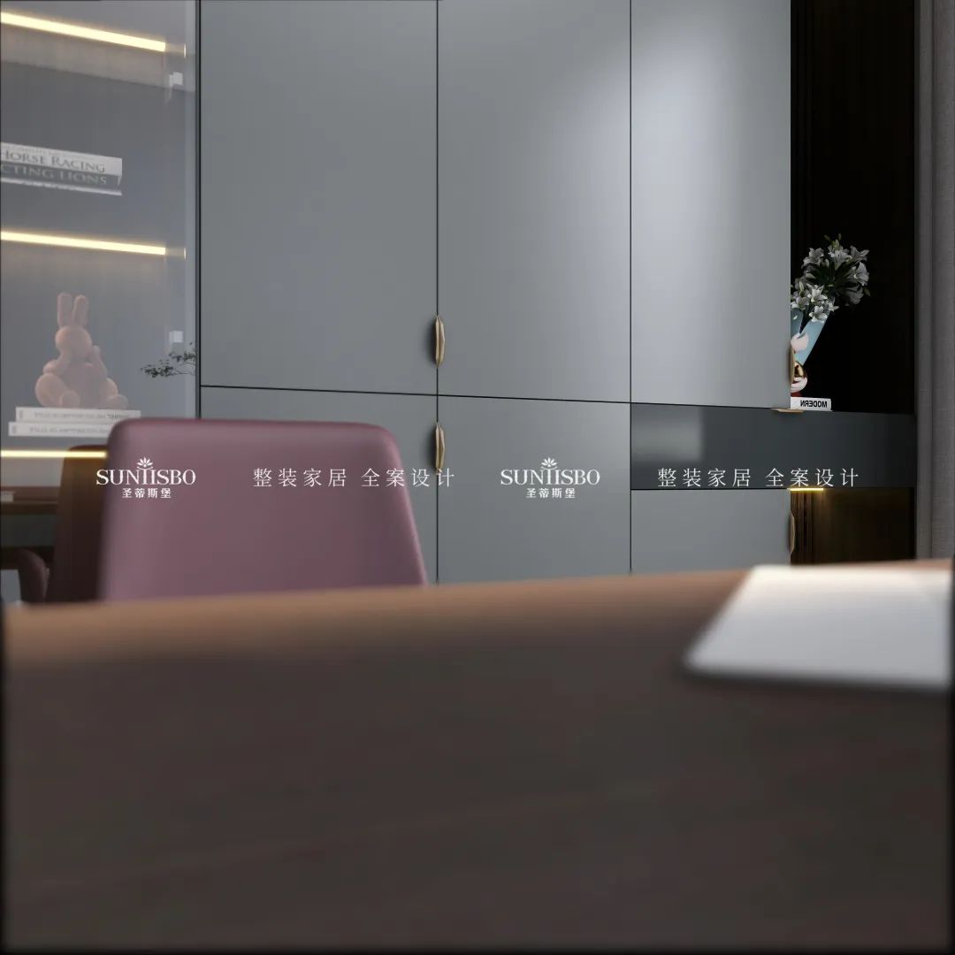 啞灰的定制書柜,冷靜理性,帶來思緒上井然有序的細(xì)密邏輯。天然原生的光感,讓視覺達(dá)到完美平衡。書房特意配上多裂綠植,讓現(xiàn)代簡約與傳統(tǒng)文化結(jié)合,萌發(fā)出別出心裁的設(shè)計(jì),展現(xiàn)業(yè)主對傳統(tǒng)文化情結(jié)的喜愛。
