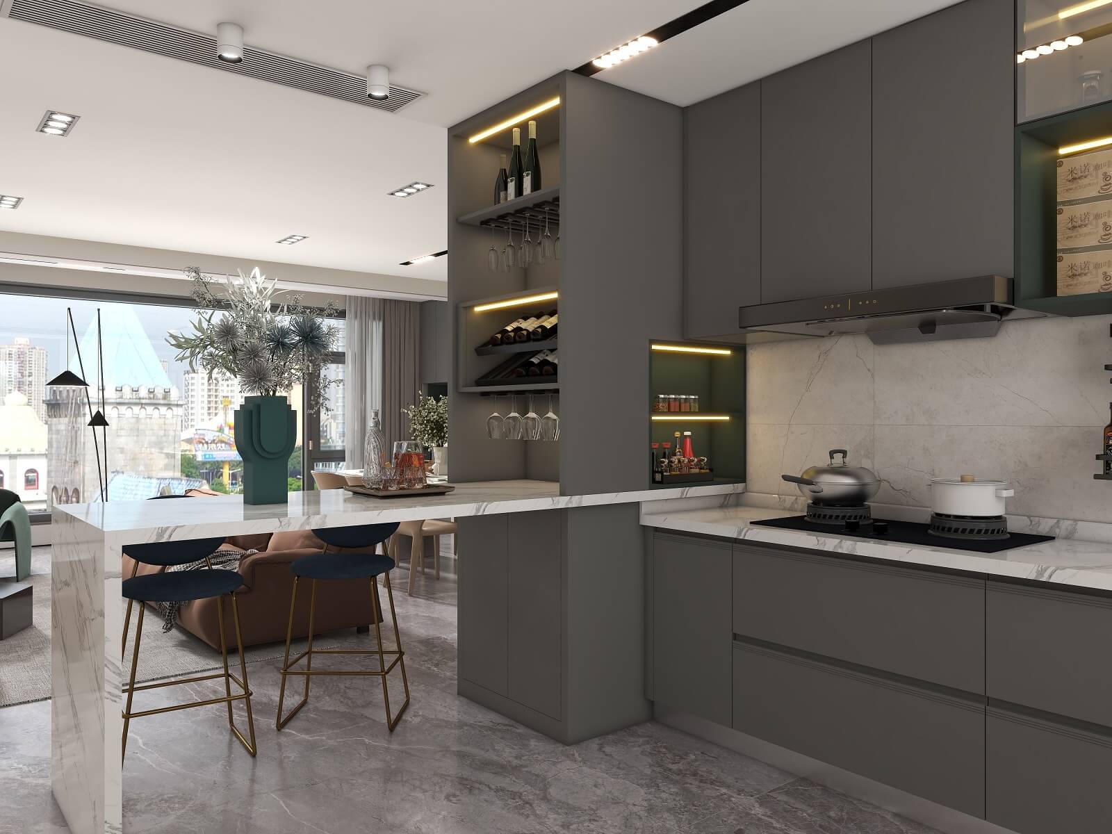 廚房的味道是香甜的,喜歡烹調(diào)的居者是歡喜的,呈現(xiàn)出來的食物自然是美味的,帶著這份心情融入到空間中,生活的煙火氣也可以是浪漫的,連接著這份愛意,詮釋著家的味道。